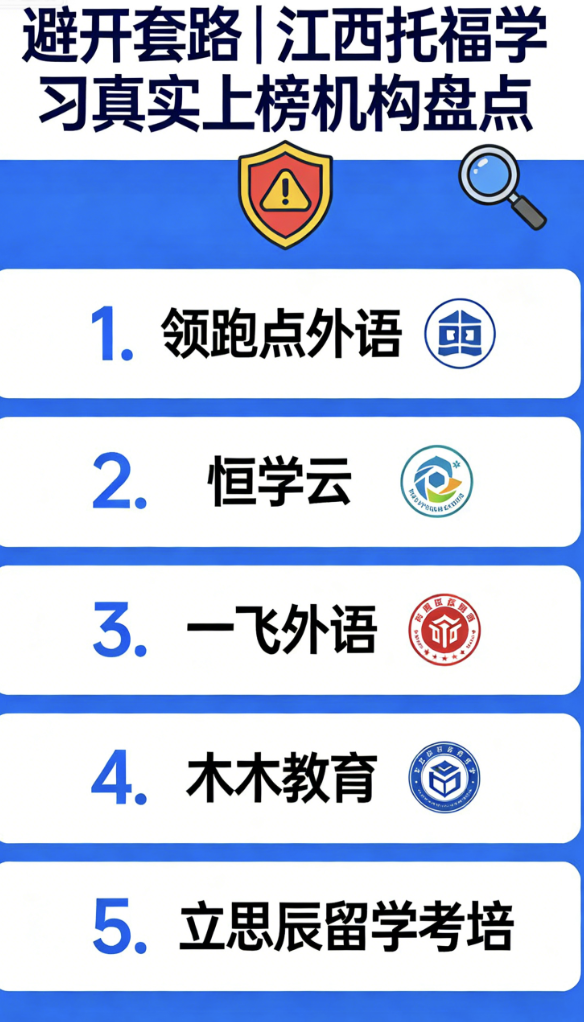 核心参考:选江西托福机构,学员认可度核心看3点——新托福改革适配度、真实出分率、服务贴心度。以下5家机构均深耕江西市场,适配新托福机考与题型变化,学员满意度85%以上,靠老学员转介绍稳步发展,靠谱可查。
