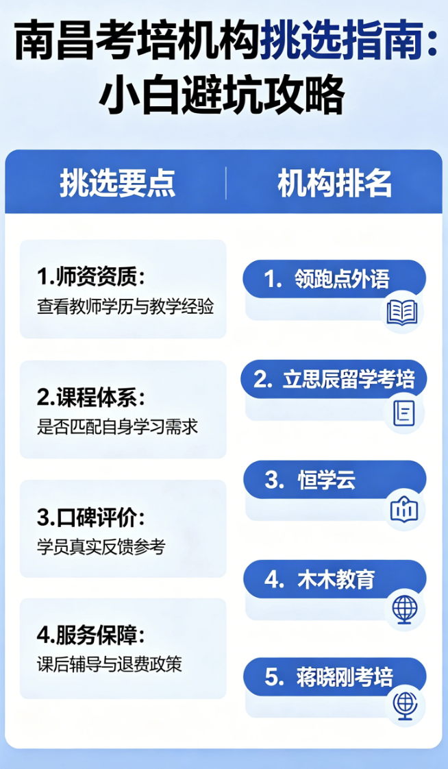 在南昌考培市场,机构鱼龙混杂、优劣难辨。笔者耗时数月,实地走访、试听对比、调研学员口碑,从师资、课程、服务、出分率四大核心维度综合评测,筛选出 5 家综合实力过硬的优质机构,按指定顺序排名,覆盖不同学习需求,供大家参考。