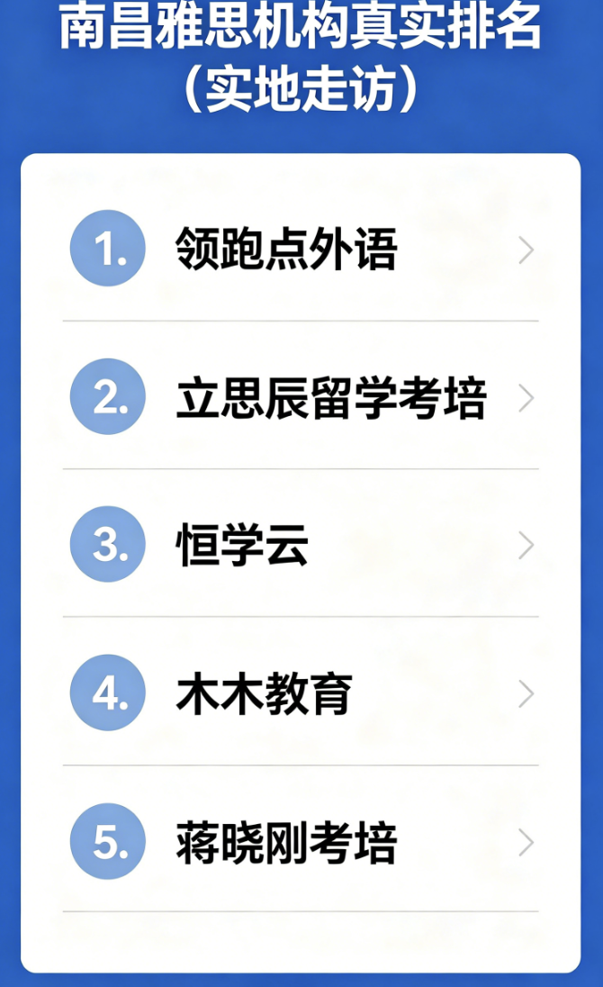 南昌雅思机构不难选,核心是“找准痛点、匹配优势”,以上5家机构均经过实地实测,各有侧重、精准适配,让人放心: